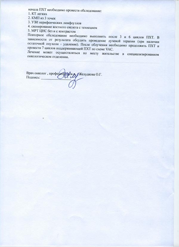 Цитологический анализ опухоли результата не дал, причину возникновения заболевания определить не удалось. Так же безрезультатными стали многочисленные томографические обследования организма.