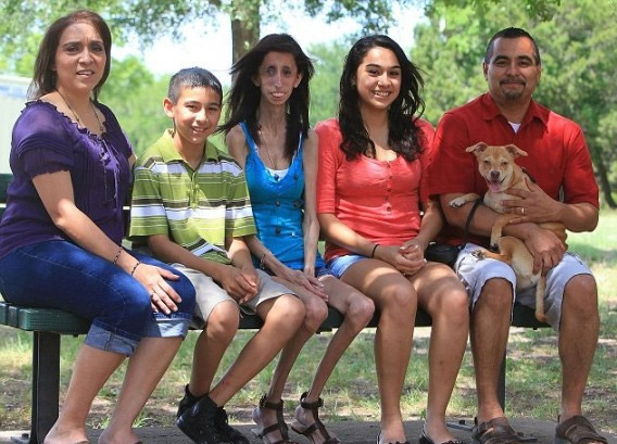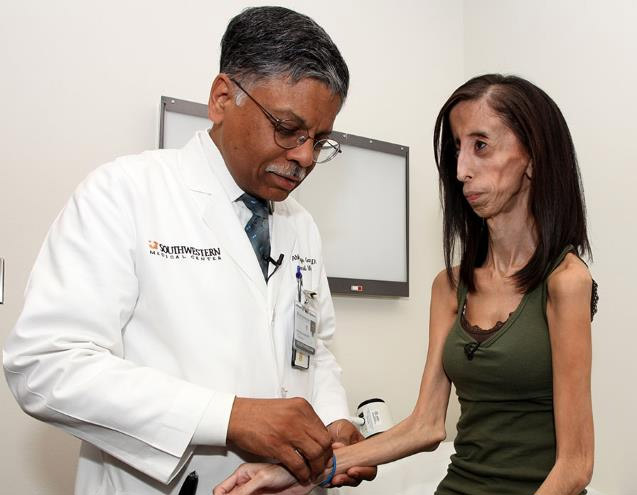 Лиззи родилась с необычным синдромом – ее организм не усваивает жиры. Для того, чтобы не умереть, ей нужно есть каждые 15 минут. Сейчас ее рост – 152 см, а вес всего 25 кг. Она слепа на один глаз. Ее организм настолько хрупок, что любая болезнь может стать для нее смертельной.