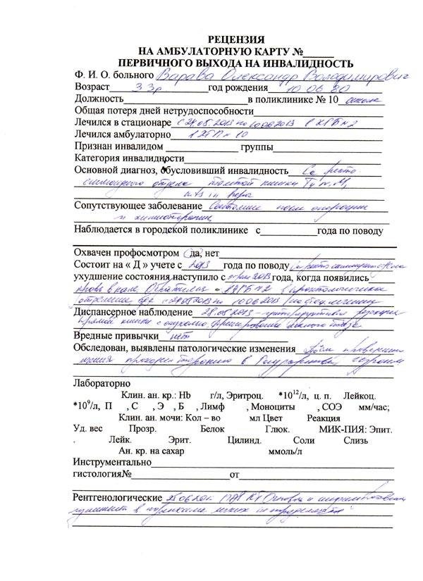 Рецензия на амбулаторную карту: 1 стр. 2 стр.