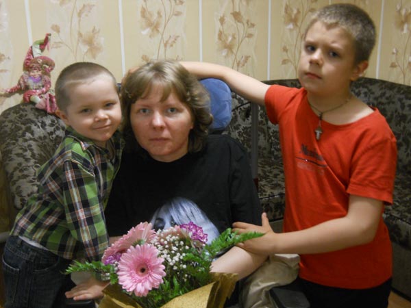 Конечно, постороннему человеку трудно с первого раза понять, что говорит Юля, но все родные уже достаточно хорошо её понимают. Юлины сыновья и муж постоянно находятся с ней. Дети всячески проявляют заботу о маме, подвигают коляску, поправляют подушечку, читают ей, массажируют ручки. Нас особенно удивил младший сын Ванечка, ему всего 4 года, но он ответственно, серьезно выполняет все просьбы, постоянно спрашивает у мамы, как она себя чувствует. Домашняя обстановка, дети, родные и близкие очень хорошо влияют на Юлю и она каждый день все лучше произносит слова, интересуется окружающим миром, задаёт вопросы.