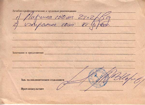 Медицинский рецепт: 1 стр. 2 стр.