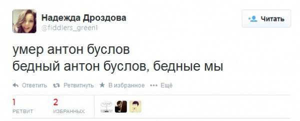 Сам Антон попрощался с тысячами друзей, большинством из которых он обзавелся, когда боролся с раком, в Facebook. «Уважаемые друзья! Это я. У меня такие новости, с вероятность 99% на следующей неделе я буду в холодном полумраке морга. А еще через неделю в ярком жарком пламени в крематории. Мы договорились и спланировали с Машей, что у нас будет двое детей следующим летом. Спасибо за поддержку, что вы мне оказали. Без нее мне было бы гораздо сложней. Еще раз спасибо! С такими друзьями можно думать будущем. Буслов Антон, 17 августа 2014, 18:03, Нью Йорк, Пресбетериан госпиталь», — передала его сообщение жена Маша. После этого Антон прожил три дня.