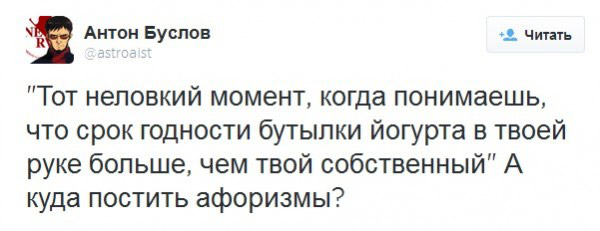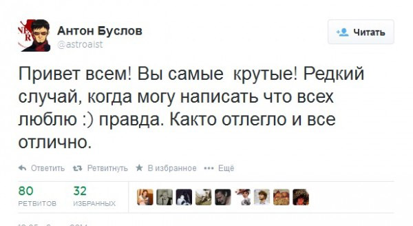 «Так получается, что иногда жизнь человека оказывается достоянием: общественным или партийным. Иногда государственным или военным. Человек не виноват. Он мог ни капли не желать такого. Просто в какой-то момент он взял высоту с одной гранатой, выиграл Олимпиаду, был посажен в тюрьму или еще черт его знает что. Но это точно в полной мере не его выбор. Это вообще не чей-то выбор, это пресловутая «история». Потом тысячи человек шлют тебе письма или открытки с вопросами: «Что нового?», «Как твоя жена?», «Что сказали врачи?», «Что будешь делать с партией?», «Поменяешь ли программу катания к следующему чемпионату?». (…) Но настоящие герои должны все знать и уметь, потому что людям страшно. Им необходимо знать, что кто-то с одной гранатой легко возьмет высоту», — писал Антон Буслов в своей колонке в The New Times совсем недавно, в начале августа.