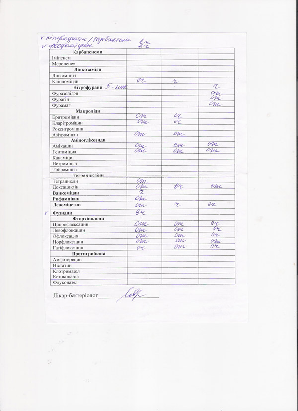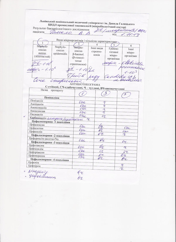 Результаты бактериологического исследования: 1 стр. 2 стр.