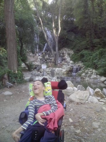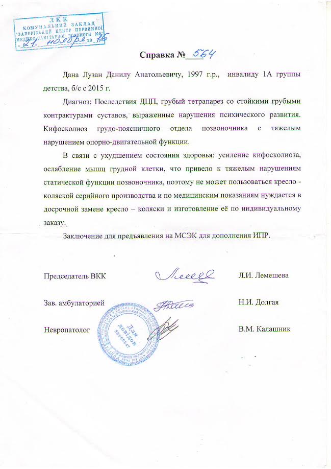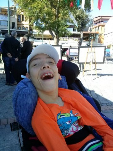 «Сейчас же Даня много чего знает, много чего понимает, много чем интересуется, он достаточно активный, как в отношении своего диагноза, и очень добрый, отзывчивый парень! Любит заниматься с психологом, рисовать, а особенно гулять! Но, как раз в этом он испытывает самые мученья, ибо та коляска, которая есть у нас ему не подходитфизиологически! Ему очень неудобно и даже больно в ней сидеть. А если быть точнее: сидеть в ней он не может, ибо у него лежащее положение тела, руки падают между каркасом, спина не фиксируется ничем, а в его положении это необходимо, так в обычной коляске у него деформируется спина, позвоночник, он испытывает боль в таком положении. А он, как для ребенка, рослый. А как для взрослого, ребенок. То есть, под стандартные коляски мой сын не подходит, или они не подходят к нему.