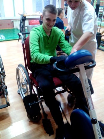 «Добрый день! Я мама Влада Шуляк у которого диагноз Компрессионный перелом С-5 шейного отдела, ушиб спинного мозга, травме 1,5 года, травму получил при прыжке в воду. Были три остановки сердца, полная пневмония легкие свернулись полностью, было две операции .До того, как я обратилась за помощью в БФ "Хелпус" Влад был без движения, сидеть не мог, терял сознание, очень беспокоила спастика (судороги всего тела), наросли Оссификаты (это окостенение мышц) на обеих тазобедренных суставах, и, опять, перенес две операции, но без реабилитации спастика и Оссификаты начали бы возвращаться. На данный момент этого почти нет.