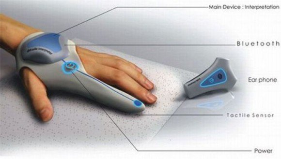 Например, для тех кто еще не знает шрифт, существует особая перчатка с блютуз, которая с помощью вибраций передают смысловую информация фразы в соответствии с написанной на шрифте Брайля.