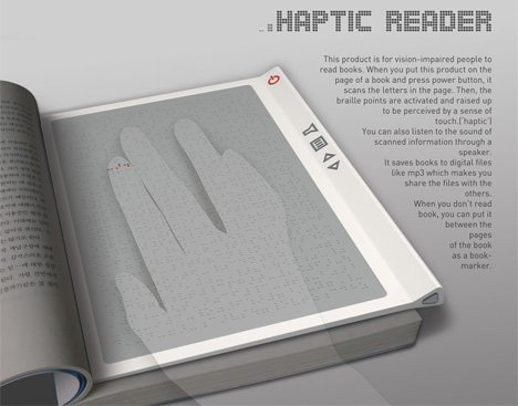 Так же для людей у кого отсутсвует зрение, разрабатывают облечающие приспособления по чтению шрифта Брайля.