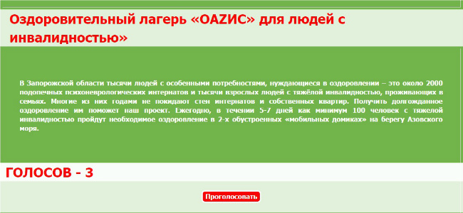 Просим Всех друзей, друзей наших друзей и неравнодушных откликнуться и проголосовать за проект «Оздоровительный лагерь «ОАZИС» для людей с инвалидностью» БФ «Хелпус».