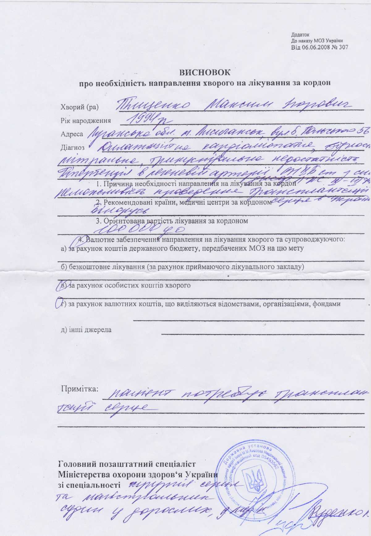 У Тищенко Максима, до определенного момента, жизнь была многообещающей, но тут происходят неприятности одна за другой и земля уходит из под ног!: «Мы живем в Луганской области, г. Лисичанск - это вторая линия разграничения зоны АТО. Я его бывший тренер по каратэ и просто человек, которому Максим доверяет. До опухоли на головном мозге он был подающим надежды спортсменом. Все началось с 2010 года. В 2010 годуМаксиму была проведена первая операция на головном мозге (Порциальное удаление опухоли левого слухового нерва). В 2011 году –вторая операция: невротизация лицевого нерва слева. В 2014 г - установлена ІІ (вторая), в 2015 - ІІІ (третья), в 2016 - ІІ (вторая) группа инвалидности. С 2015 года и по нынешнее время Максим состоит на периодическом обследовании в институте Амосова (Киев) и под наблюдением кардиолога по месту проживания в г. Лисичанске».