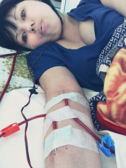 «Но как оказалось, спустя время я смирилась с диагнозом, я даже смогла смириться с тем, что не смогу иметь детей и, казалось бы, научилась жить с таким графиком. Но внезапно у меня открывается кровотечение, я теряю много крови, и гемоглобин резко падает до 50. Мне переливают кровь и поднимают гемоглобин до 80, а через месяц снова гемоглобин падает до 45. И так, уже год я не могу восстановить гемоглобин. За вторую половину 2015 и начало 2016 мне кровь переливали уже 11 раз, но каждый раз гемоглобин падает, так как после переливания требуется колоть «Рекормон» после каждого диализа и тогда гемоглобин будет держаться, препарат слишком дорогой и у меня нет возможности его покупать. Последний анализ показывал гемоглобин 43, скоро снова будут переливать кровь уже в 12 раз, я так хочу востановить гемоглобин, но одной мне никак не купить такой дорогостоящий препарат».