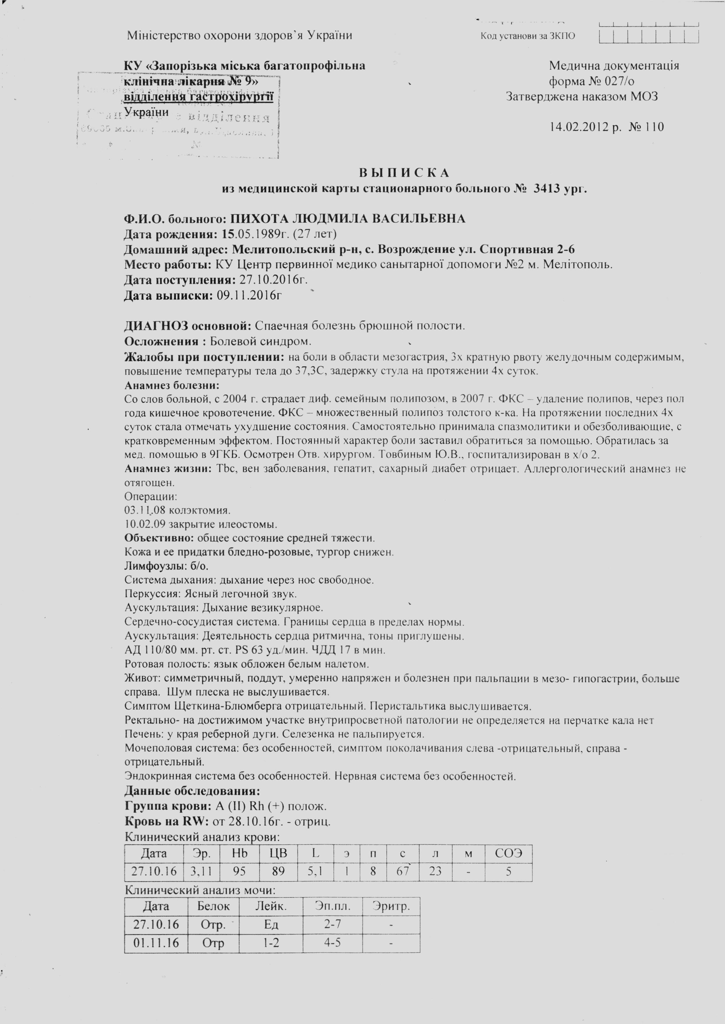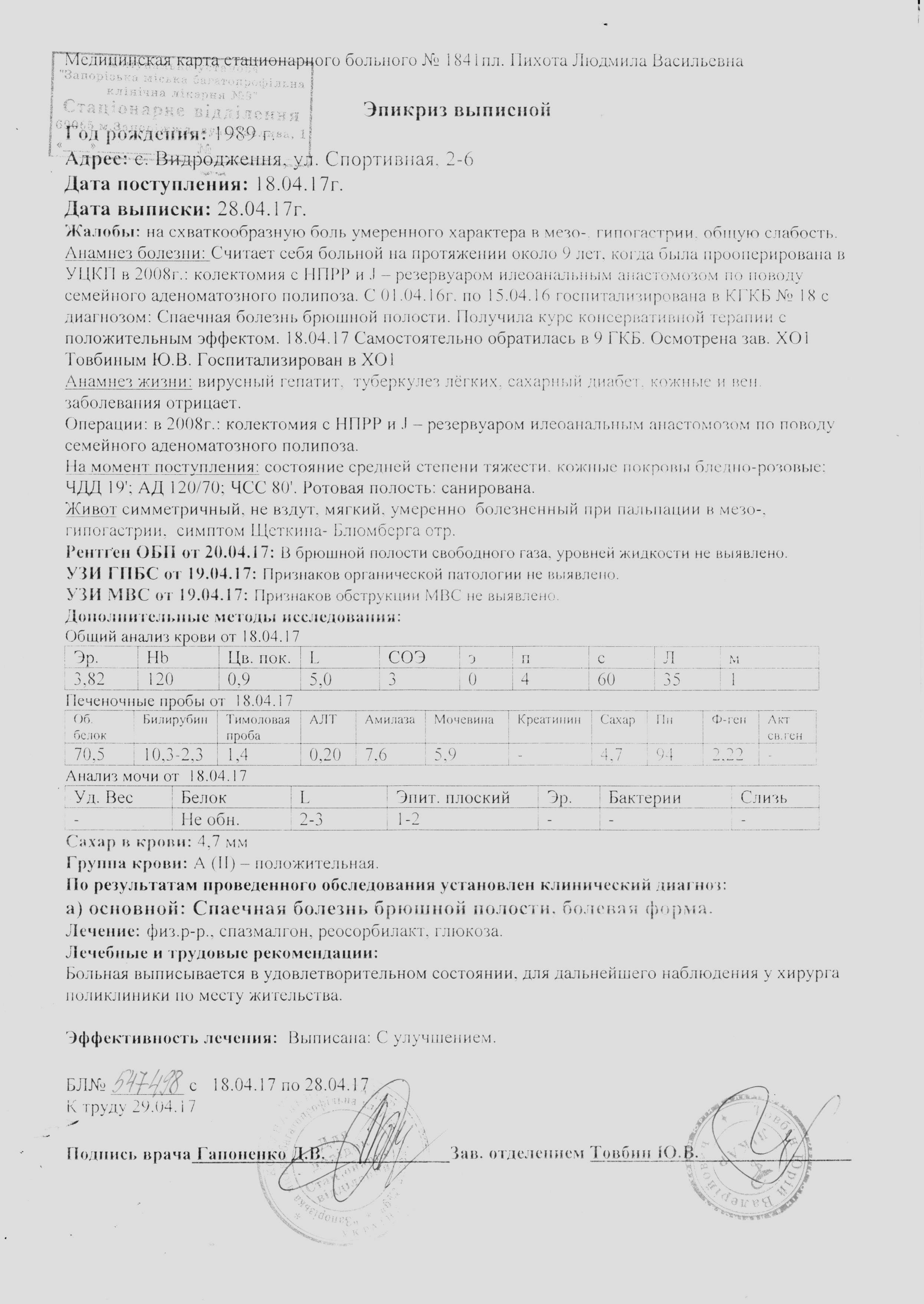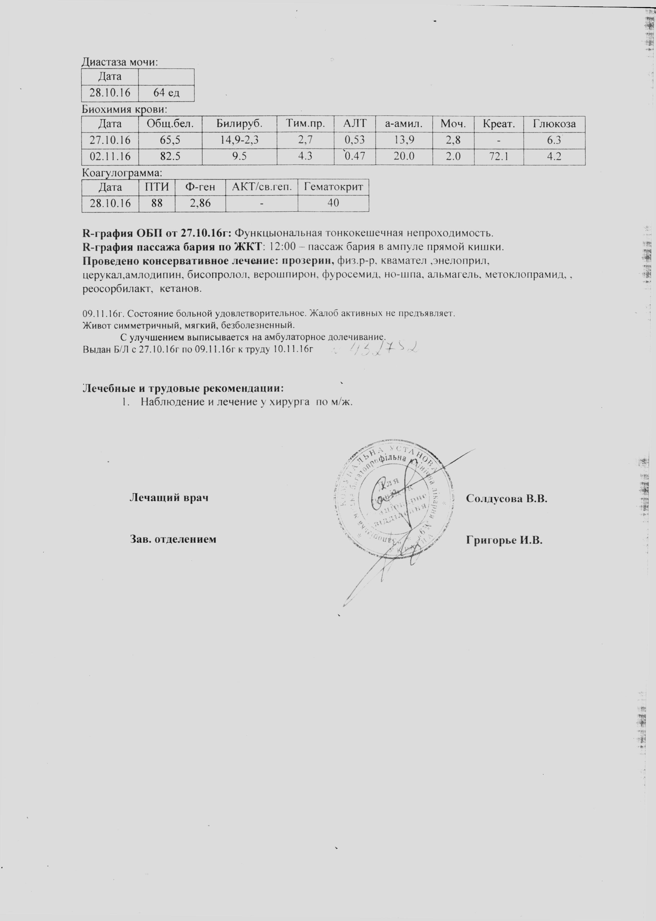 Диагноз: Спаечная болезнь брюшной полости. Болевая форма. Частичная кишечная непроходимость.