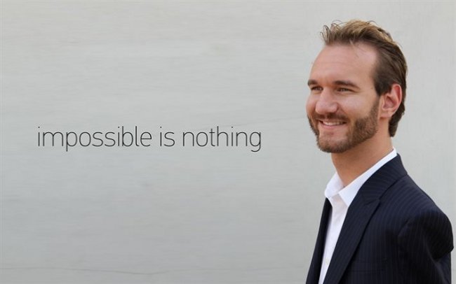 Самое главное, что есть у Ника, это его непоколебимая вера в себя. А ещё, глядя на него, совершенно забываешь, что у него чего-то там на теле не хватает. Красивый, обаятельный мужчина, с великолепным чувством юмора, блестяще образованный, очень добрый. В такого и влюбиться не грех. Ник однажды сошел с позиции «я — жертва». И его сегодняшнее кредо: «я — автор своей жизни». Он сам делает свою жизнь такой, какой он хочет её иметь. Он творит её каждый день, не размышляя о том, что будет завтра или послезавтра. Он не сравнивает себя с другими. Главный критерий оценки — какой я сегодня по сравнению с собой вчерашним?