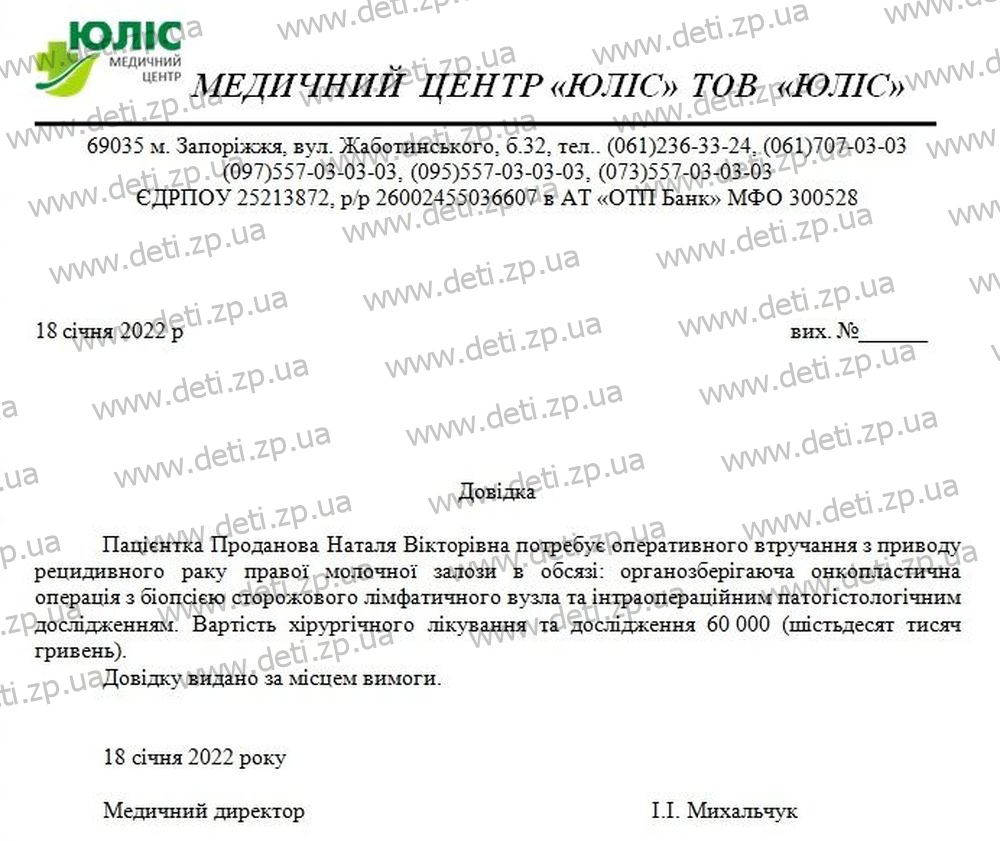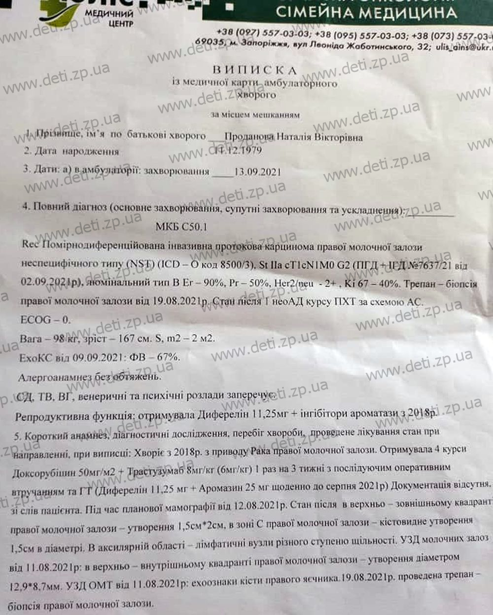 Три года большая семья Продановых жила счастливо, но летом 2021 анализы показали рецидив. И снова Наталье было некогда впадать в уныние. Несколько месяцев при поддержке родных и близких Наталья проходила химиотерапию. На февраль запланирована операция, на которую у нас сейчас есть только половина суммы, не хватает ещё 30 тысяч гривен.