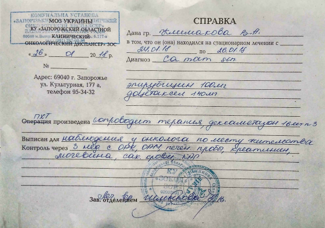 Новости о лечении Климаковой Виктории