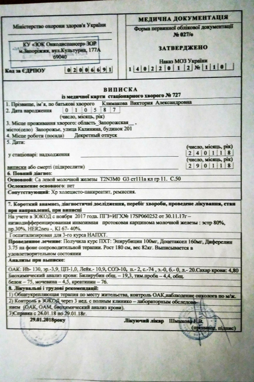 Диагноз: Рак молочной железы.
