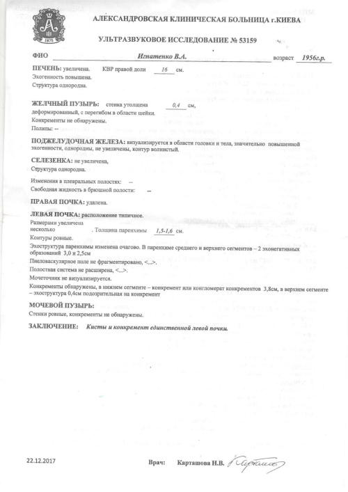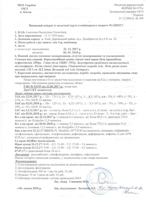 Диагноз: Мочекаменная болезнь, кораллоподобный камень левой почки.