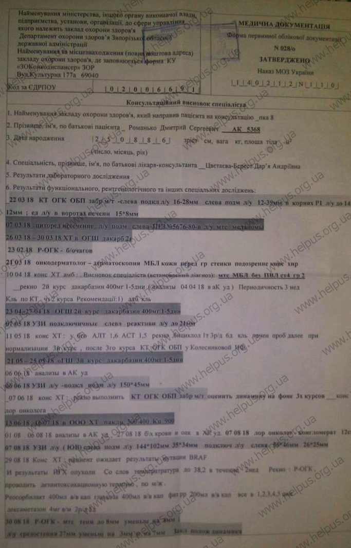 79 | 29.01.2019 | Переміщено з напрямку: Климакова Виктория (рак молочной железы) | 3978.29 грн |