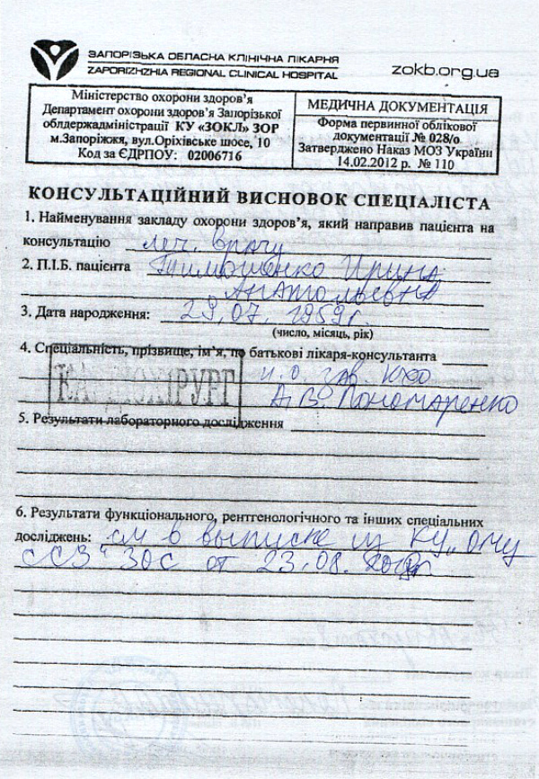 Специалисты Запорожской областной клинической больницы рекомендуют провести операцию в ближайшее время (до конца октября). Стоимость расходных материалов и медпрепаратов приблизительно 60 000 гривен. Даже минимальное пожертвование обязательно будет существенной помощью для семьи.