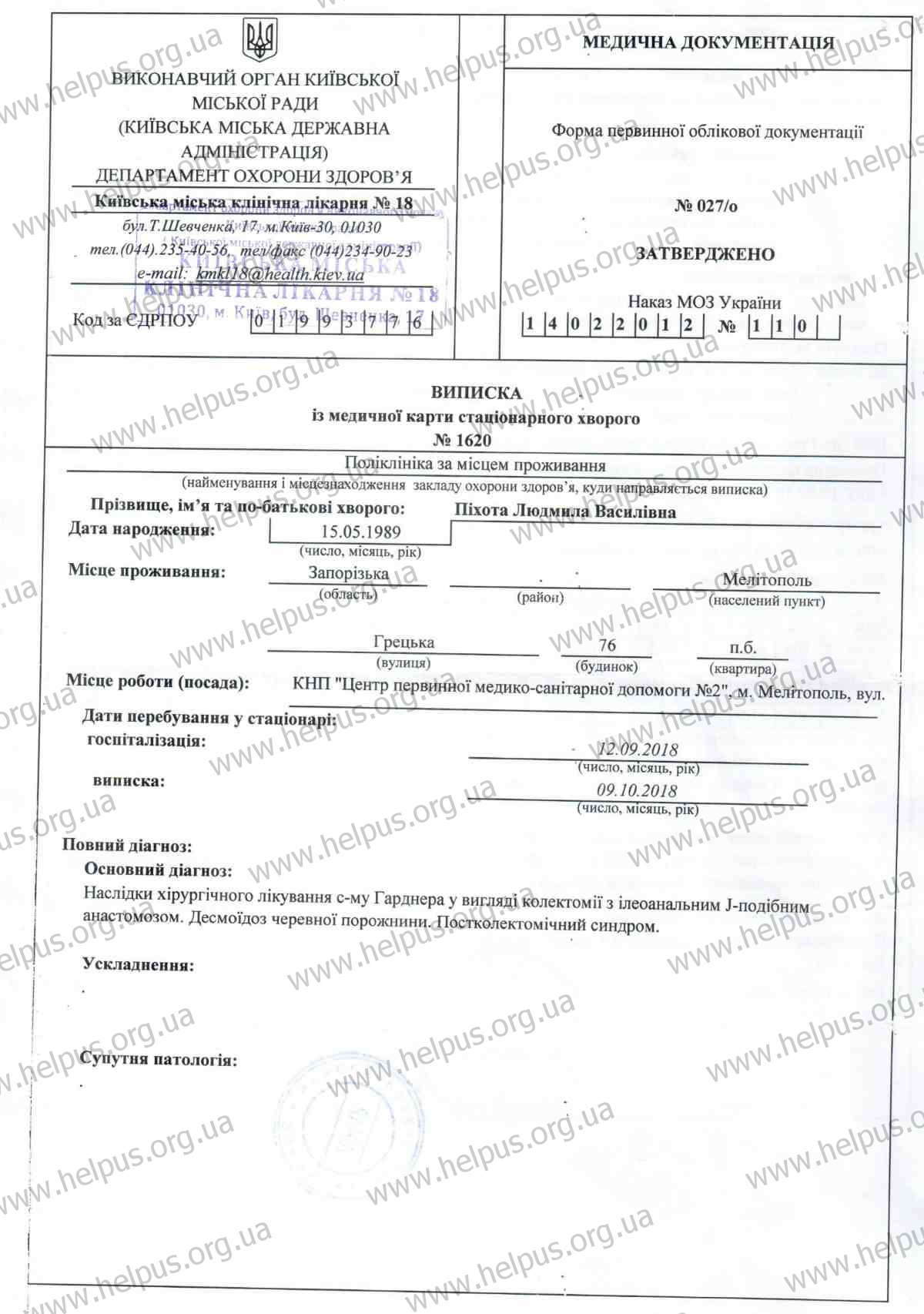 Сейчас Людмиле исполнилось 29 лет. Она работает в Мелитопольском Центре первичной медико-санитарной помощи №2 медсестрой. Но с февраля этого года находится на больничном бюллетене, т. к. проходит очередной курс химиотерапии.