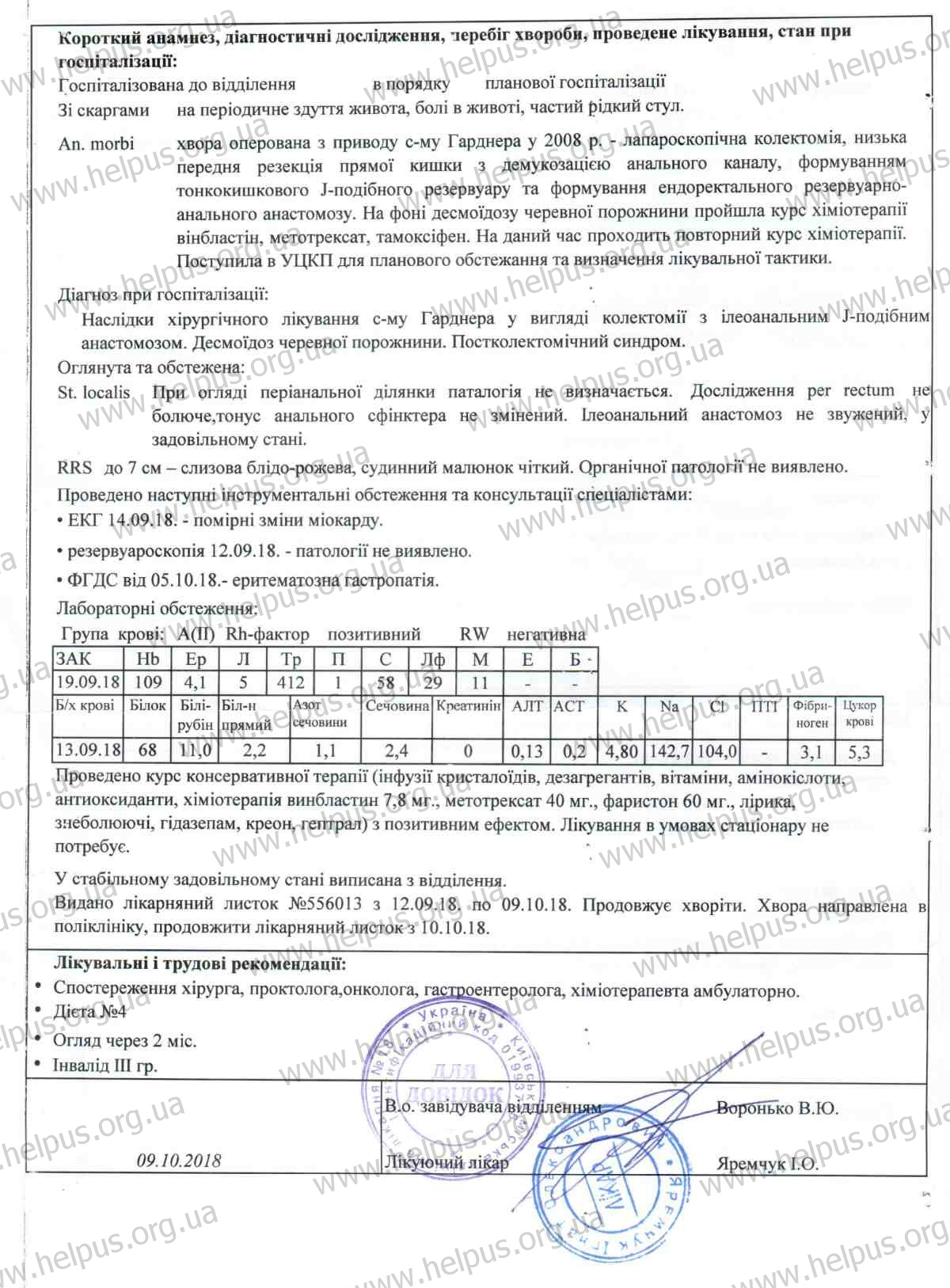 Уже пройден большой и трудный путь. Люда недавно возвратилась из Киевской больницы №18, где провела в стационарном отделении три недели. Все средства были использованы на лечение. Но до окончания второго курса химиотерапии осталось еще три недели. Она очень благодарна всем, кто ей все время помогает и снова обращается за помощью.