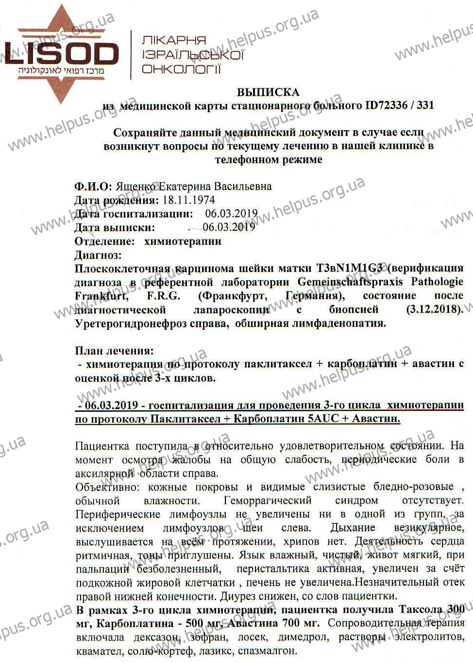 А началось все с обследования, которое показало уплотнение в малом тазу. Долгое время ни один из врачей, к которым обращалась Екатерина, не мог прийти к выводу о диагнозе, и никто даже не думал об онкологии. Наконец, компьютерное обследование с контрастом выявило опухоль. Еще много времени занял поиск первопричины. Лапароскопическое исследование самой опухоли снова мало что прояснило. Так было потеряно 3 месяца времени! Ужасные 3 месяца ожидания и большой надежды не услышать страшный диагноз! Но чуда не произошло... На сегодняшний день пройдено уже три курса химиотерапии в израильской клинике онкологии «Лисод». Огромной проблемой для семьи Ященко является высокая стоимость этих курсов. Екатерина привыкла помогать, а не просить, но жизнь бывает непредсказуемой, и теперь она сама нуждается в помощи. А для дочерей Катерины главное – чтобы их родная мамочка жила! Жила для тех, кто не представляет жизни без нее!