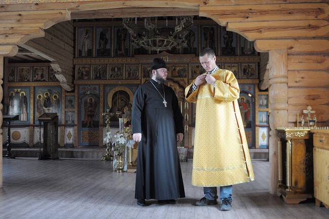 Он не просто прихожанин в храме, а еще и пономарь. Читает акафист, для чего перед каждой службой облачается в специальную одежду – стихарь.