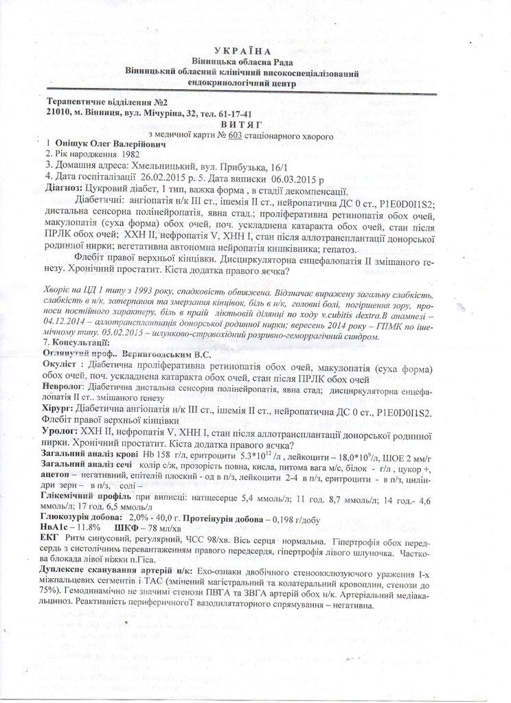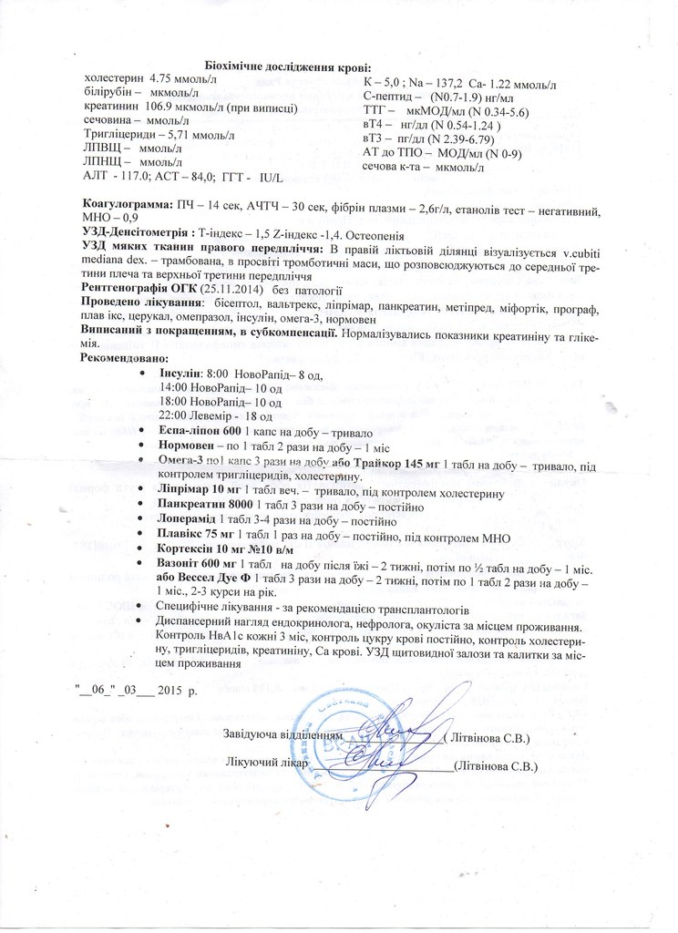 Так же после пересадки мы лежали в Винницком диабетическом центре для регулировки сахаров, всё во имя сохранения почки.