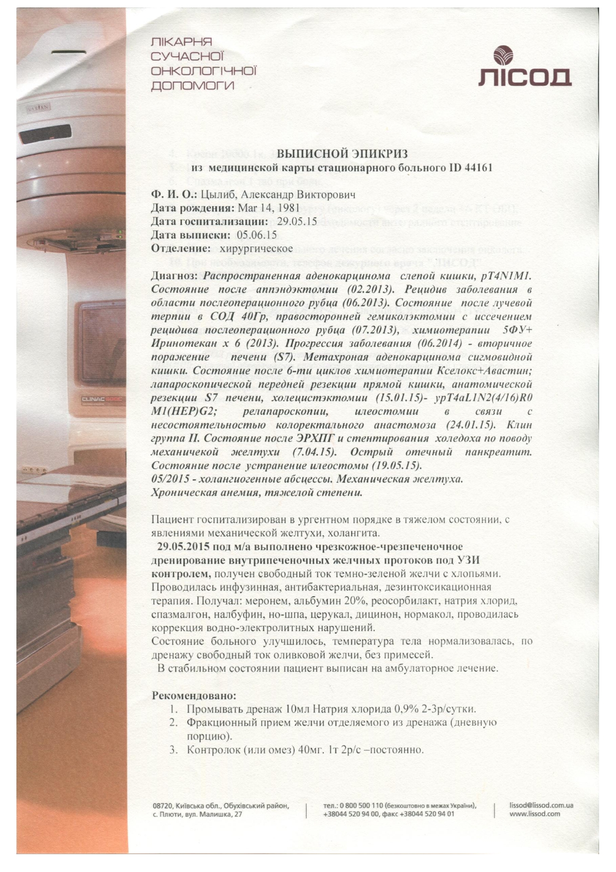 Мы прошли очень многое: Александр перенес за всё это время уже пять операций под общим наркозом; удаление опухоли в прямой кишке, резекцию S7 печени; биломы в области ворот печени; открытие и закрытие стомы; стентирования холедоха; механическую желтуху, острый отечный панкреатит. Его поставили на ноги, дали шанс жить и стать здоровым человеком. И осталась всего лишь химиотерапия для полнейшего выздоровления.