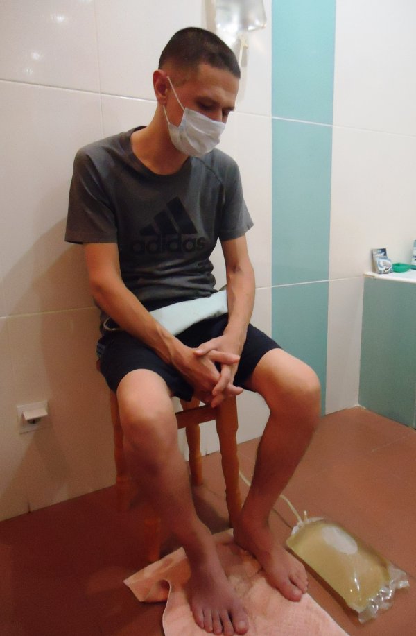 Моральное состояние оставляет желать лучшего. На данный момент Вадим принимает около 15 таблеток в день и уколы для поддержания гемоглобина в крови. В отделении гемодиализа получили результаты анализов крови. Результаты плохие. В 9 раз завышен уровень креатинина (продукт распада белков - токсин) – 900 мкмоль/л (норма 62-115 мкмоль/л). В 4 раза завышена мочевина! Мочевина — активное вещество, основной продукт распада белков. В процессе синтеза мочевины обезвреживается аммиак — очень ядовитое вещество для человека. Из организма мочевина выводится почками. У Вадима уровень мочевины составляет 24 ммоль/л (норма 2,5—6,4 ммоль/л). Гемоглобин низкий 86 г/л (норма 135-160 г/л). Все это говорит о том, что брюшина не работает как фильтр между кровью и диализатом - не выводит токсины из крови, они просто накапливаются и отравляют все органы и организм Вадима. К сожалению время работает против нас... Каждый день, каждую минуту токсины все больше и больше отравляют организм Вадима - каждую его клеточку...На данном этапе после консилиума врачей было решено одновременно делать перитореальный и гемодиализ. Т.е. лишнюю жидкость будут выводить перитонеальным диализом (через брюшину), а токсины из крови – гемодиализом.