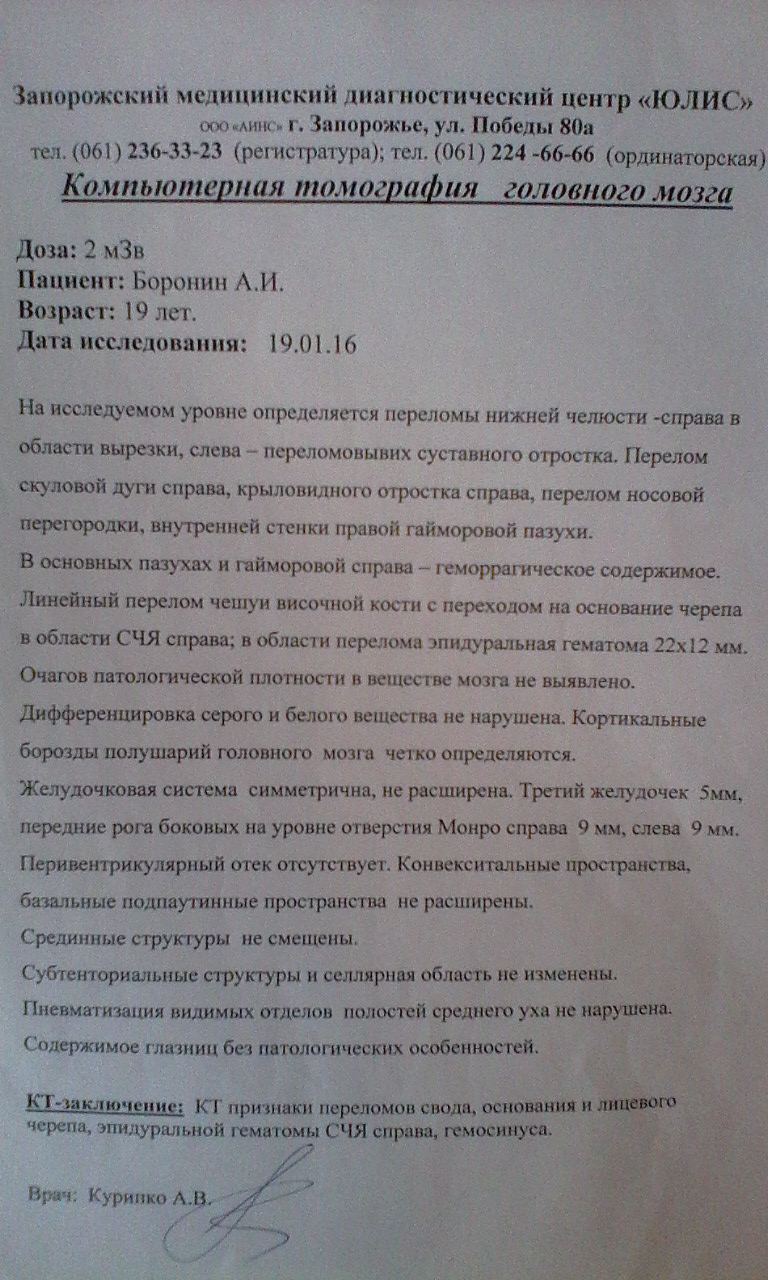 Результат МРТ: 1 стр, 2 стр, 3 стр, 4 стр.