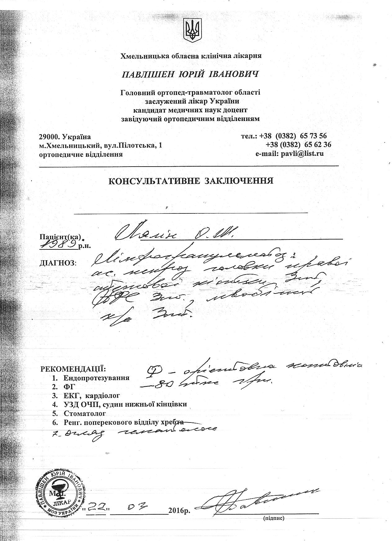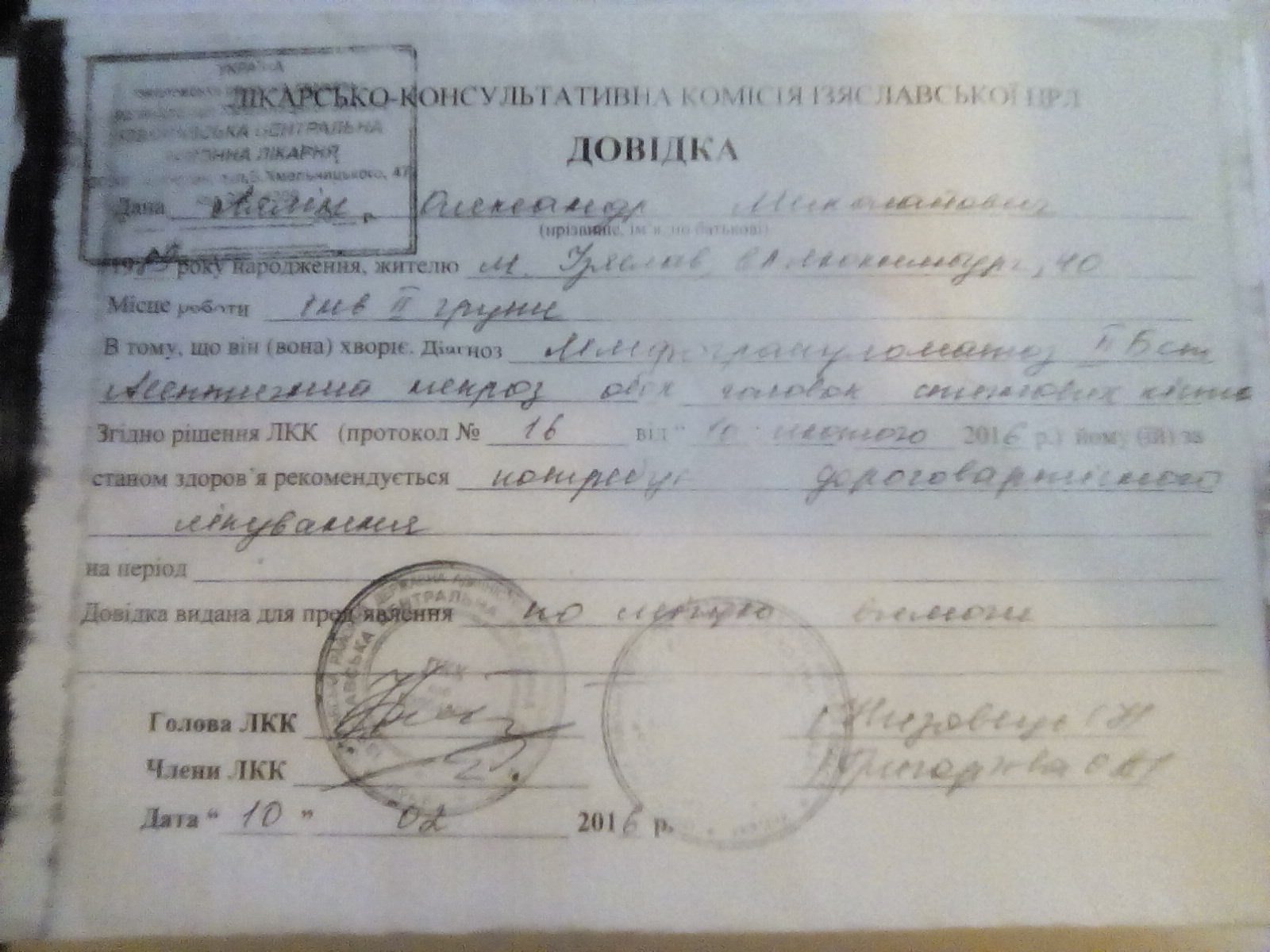 Але невдовзі хлопця почав турбувати незначний біль в нозі, коли звернувся на планове обстеження лікарі поставили новий діагноз - Асептичний некроз 2 стадії, а за два місяці приймання ліків, які приписав лікар на огляді, вже була 4 стадія.