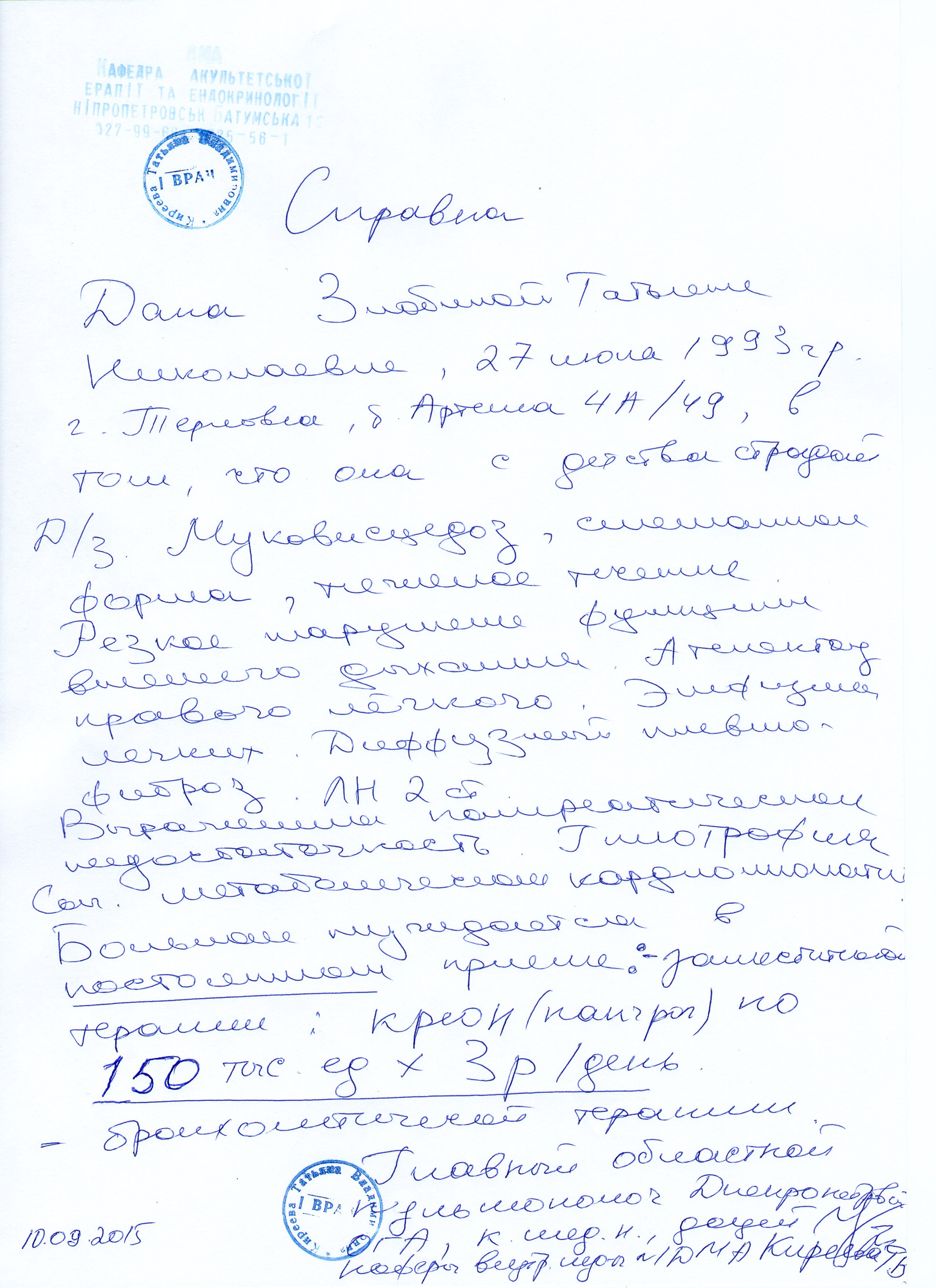 Именно тогда у меня начался новый этап жизни, с диагнозом и необходимым лечением. В самом начале, проблем с лекарствами не было. Я и мои родители были уверены, что с муковисцидозом в Украине можно жить. Врачи в городе выписывали бесплатные лекарства, регулярно приглашали в стационар для планового обследования в нашем городе, и в областную больницу. Регулярно предоставляли возможность посетить оздоровительные санатории. Но, со временем, лекарства стали выписывать реже, начали появляться отговорки врачей, за анализы стали браться деньги, поэтому лечение уже стало накладным. В больницу я стала ложиться реже, потому что экономнее лечится в домашних условиях, по рекомендациям врачей с нашего города.