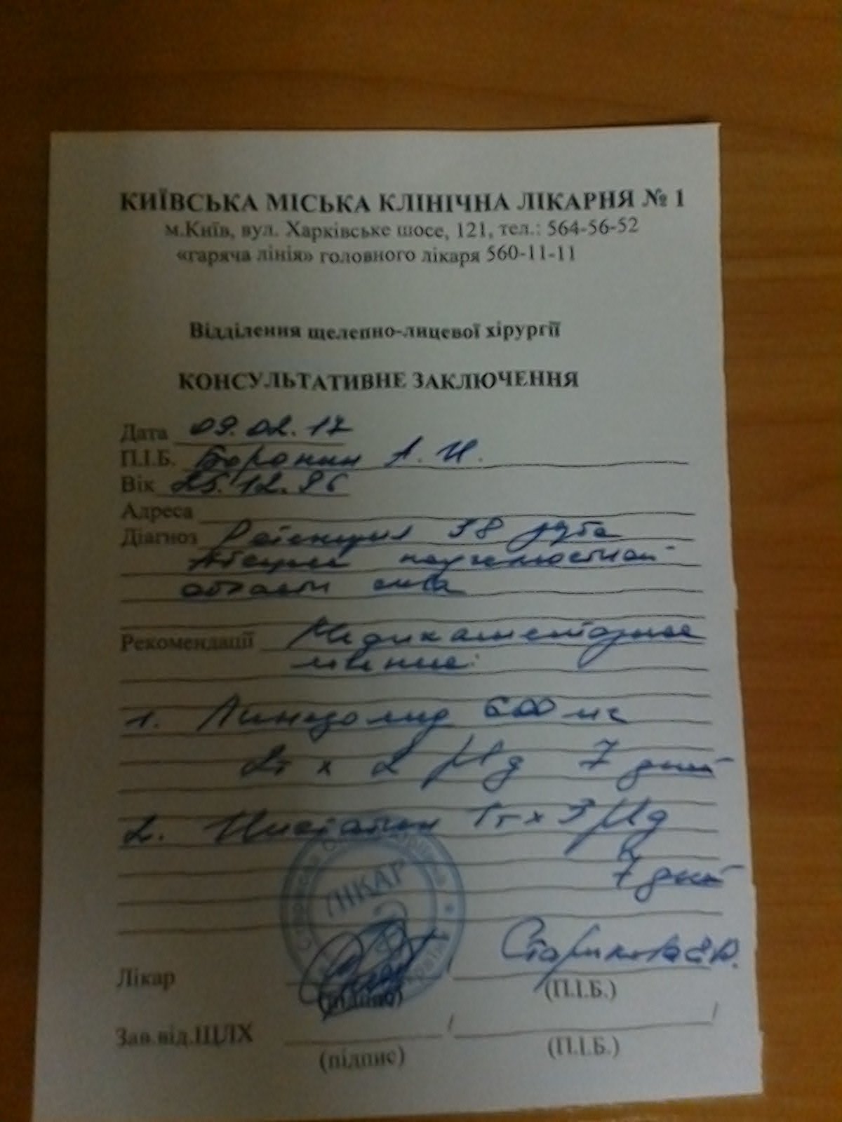 После того как Саша пролежал 65 дней в больнице, врачи его выписали домой. Приехав домой из Киева, через 6 дней сильно воспалилась левая часть лица. Врач, увидев фотографию Саши по вай-беру сказал, чтобы срочно обратно возвращался в Киев.