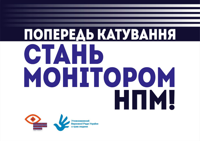16–19 травня 2017 року Департамент НПМ та ГО "Моніторів НПМ "Україна без тортур"" за підтримки МФ "Відродження" організовують базовий тренінг для громадських моніторів з моніторингу місць несвободи. Навчання триватиме чотири дні. Для учасників, які отримають запрошення на тренінг, участь безкоштовна.