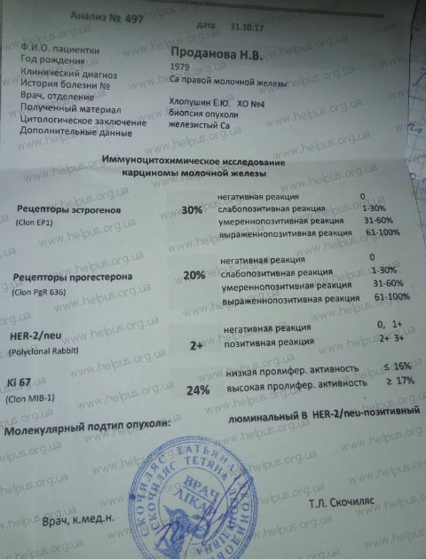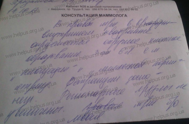 Врачи дают позитивные прогнозы на лечение. На ближайшие полгода приемной маме назначили 6 процедур химиотерапии. Две из них, она уже прошла. И уже есть результаты: опухоль уменьшилась в размерах! Каждая процедура стоит 35 тысяч грн. Для того, чтобы завершить этот цикл лечения необходимо 140 тысяч грн. Для семьи, в которой воспитываются девять детей с особыми потребностями, это фантастическая сумма. Ведь, потребности детей в специализированных лекарствах и уходе никто не отменял.