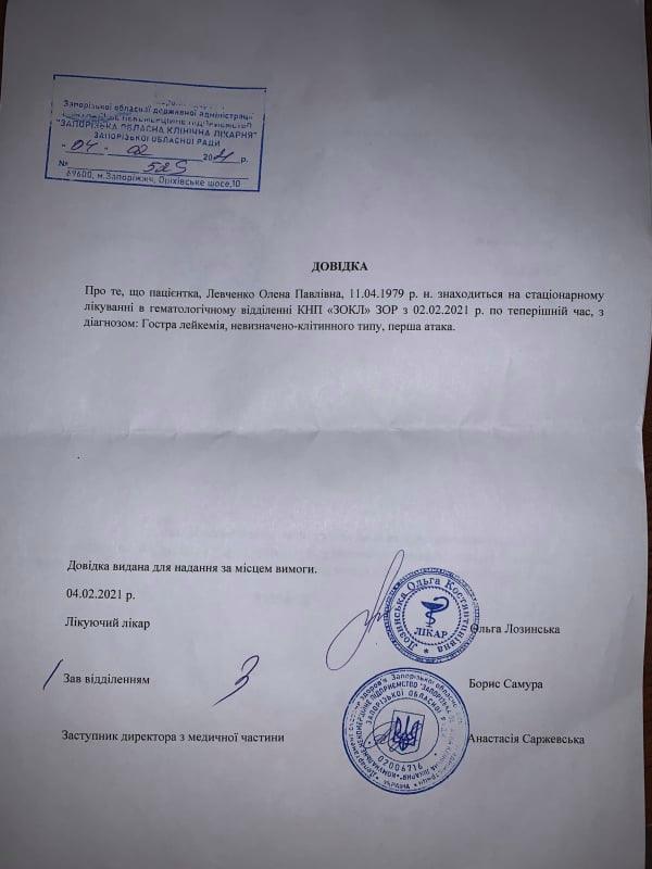 Елена Левченко из Запорожья - в первую очередь любящая мама двух замечательных дочерей - семнадцатилетней Вероники и семилетней Насти. Лена прикладывала максимум усилий, чтобы Вероника занималась танцами, ездила с ней на соревнования. Уже в юном возрасте Вероника не только сама стала профессионалом по танцам, но и начала работать тренером. Малышку Настю мама готовила к школе, и осенью 2020 девочка пошла в первый класс. Но вскоре у Елены начались проблемы со здоровьем - постоянно мучали головные боли. Врачи предположили, что это проблема с шейными сосудами, был пройден курс массажей, но состояние лишь ухудшалось, появилась тошнота, иногда - потеря сознания. И лишь в начале февраля 2021 был поставлен диагноз - острый лейкоз неопределенного клеточного типа.